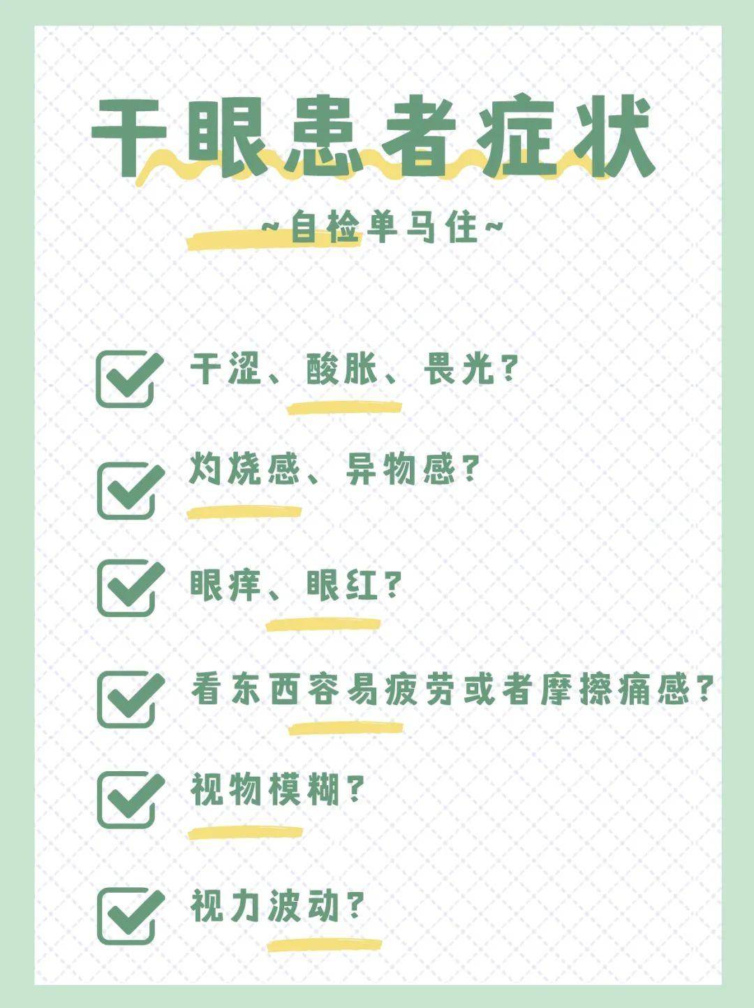 干眼成因复杂,每个人的症状都不同,如果感到自己有干眼的症状,建议尽早就医,需要专业的眼科医生先诊断出是什么类型的干眼,因类型和成因进行个性化精准诊疗。
