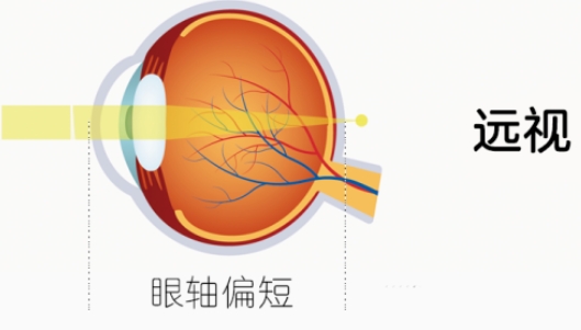 近视是因为光线入眼成像在前侧,我们看起来会模糊,而远视恰恰相反,眼轴偏短时,就形成了远视。