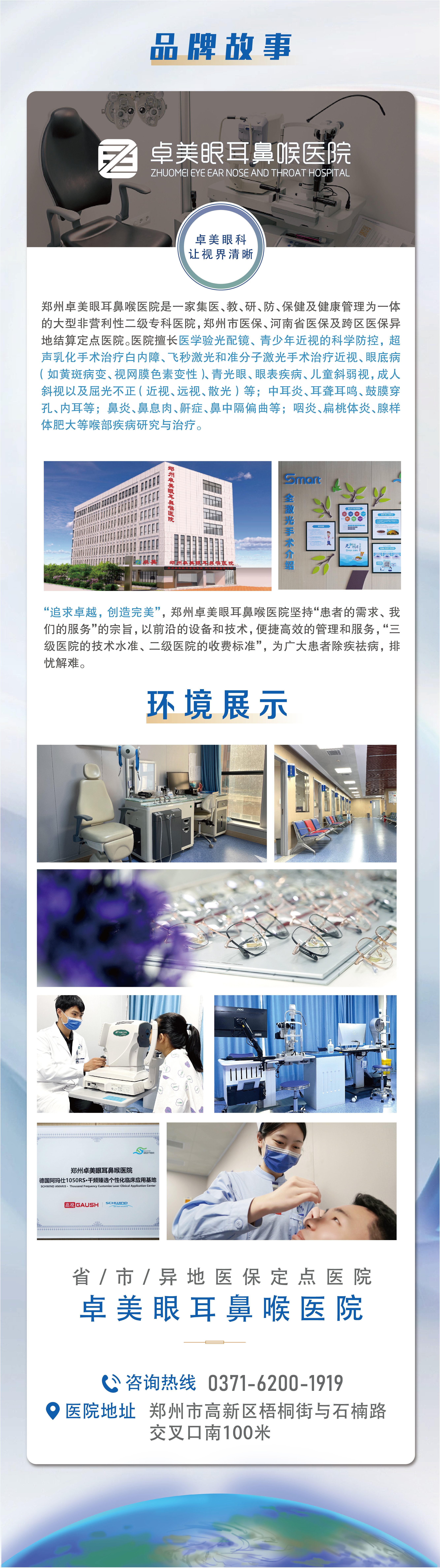 郑州卓美眼耳鼻喉医院是以国家“二级专科医院”的建设规范为标准,以“三级医院的技术水准、二级医院的收费标准”惠及患者。